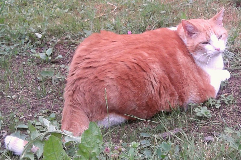 Vor ca. 10 Jahren hatten Bekannte von mir einen "Romeo", das war ein Brocken von Katze - unglaubliche 11 kg war der schwer. Einmal saß er auf meinem Schoß, fühlte sich ein bisschen so an wie ein kuscheliger Sack Kartoffeln. Aber wenn's ums Futter ging, konnte er immer noch in einem Satz auf den Tisch springen, natürlich mit entsprechendem Getöse. :o
