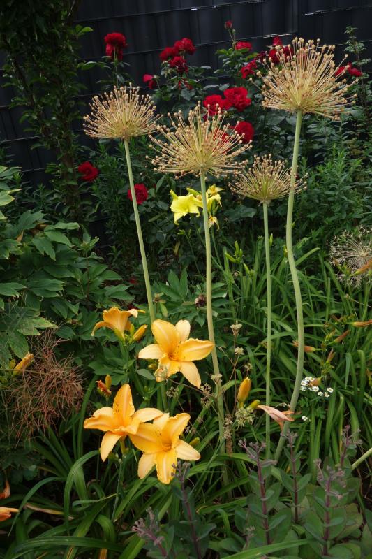 Korrektur: Es war nicht das letzte, sondern das vorletzte Bild. Das letzte mit Rosenrot, Taglilienleuchten und frischen Allium ist ebenso schön. :)
