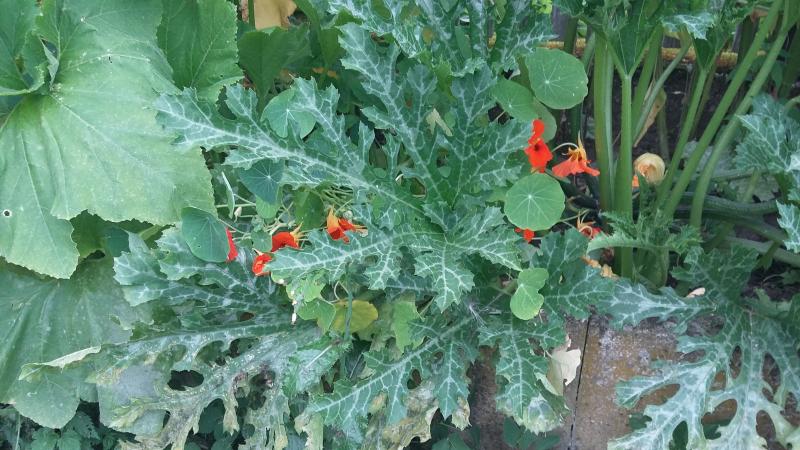 Zu den Kräutern gebe ich mal die Kapuzinerkressse dazu - und die Zucchini sind hier jetzt ja auch nicht ganz fehl am Platz ;)