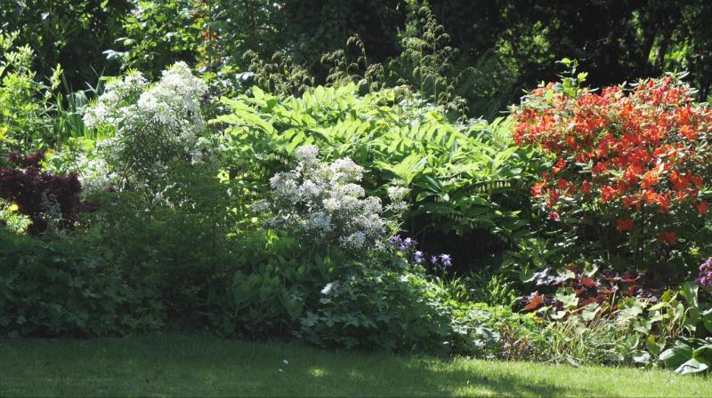 Oben Spirea die ordinääääre,…..Sorte weiß ich nicht, dann Viburnum plicatum Mariesii, Farne, eine Weide Sorte ebenfalls unbekannt, Gänseblümchen und einiges Unkraut ;D