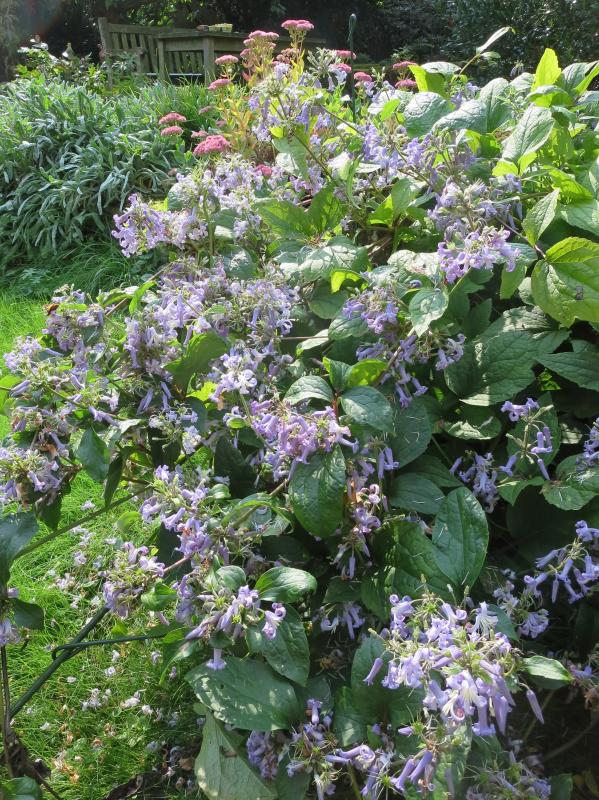 Panaschierte Symphytum im Mittelgrund rechts, Haselwurz, Hirschzungen, Fothergilla, Herbstzeitlosen und und und.