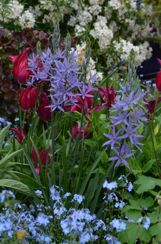 Tulpen, mit Camassia und Vergissmeinnicht