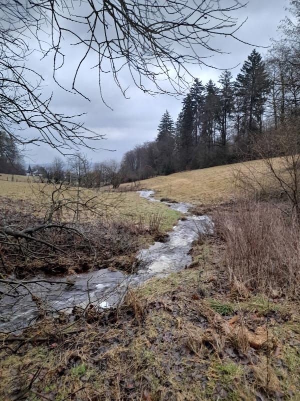 Hier noch der Bach, über den ich mit den Netzen rüber hopsen müsste. Sicher nicht über diesen Steg