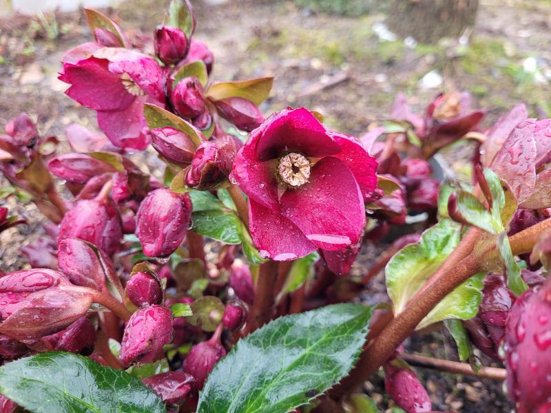 Eine dunkle Schönheit fällt jetzt auch im Regen auf: Helleborus Ice n' Roses Red... :-*