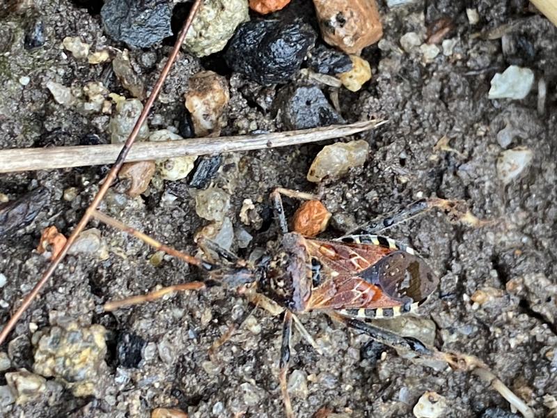 Das ist eine Wanze,möglicherweise die amerikanische Kiefernwanze. Die krabbeln hier ständig rum, va in der Wohnung, aber wenn es milder wird, sicher auch draußen.
