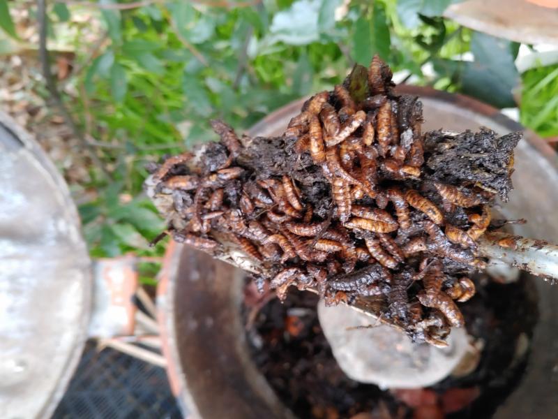 Es gibt die Theorie, dass wenn man viel Chitinhaltiges Material in den Boden einarbeitet, wie eben die Hüllen von den Insekten, dass man damit eine Population an Chitinzersetzenden Bakterien etablieren kann. Und diese Bakterien dafür verantwortlich sind, wenn die Sterblichkeit bei Pflanzenschädigenden Nematoden bzw deren Eiern zunimmt.
