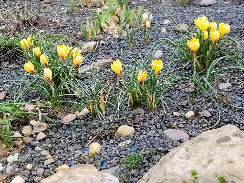 Hier begrüßten mich heute immerhin schon ein paar Krokus 'Ard Schenk ' bei herrlichem Wetter. 8)