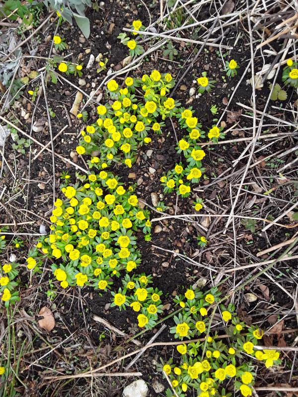 Hier zeigen sich die Winterlinge noch eher zaghaft, aber es werden täglich mehr Knospen. :)
