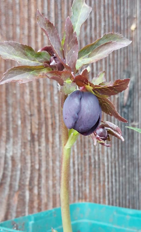 Auf meine Bettelei hin erhielt ich letztes Jahr noch ein paar mehr Helleboren, die scheinen alle gut angewachsen zu sein, und dieses Exemplar, welches den ganzen Sommer lang nur eine Handvoll teils braun-fleckiger Blätter hatte, überrascht mit drei frischgrünen Stängeln samt verheißungsvollen Knospen: