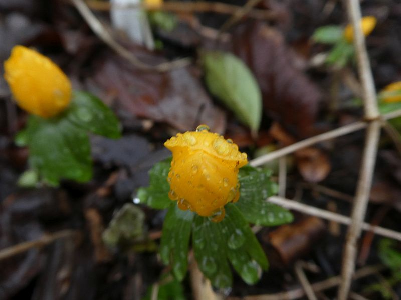 Die normalen blühen und 2 von den dreien, die ich letztes Jahr von einem lieben Menschen hier bekam :-*. Das dritte sehe ich nicht, ich gucke ständig, ob es mir entgegen leuchtet. Ein Schild habe ich auch nicht gesteckt, weil ich nicht so viele Eranthis habe ... also bin ich nicht sicher, wo es nun exakt stehen müsste :-\.