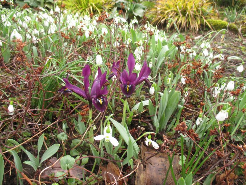Die Schneeglöckchen vergehen bereits, dazwischen eine Iris. Habe ich die dahin gepflanzt? Nicht dass ich wüsste.