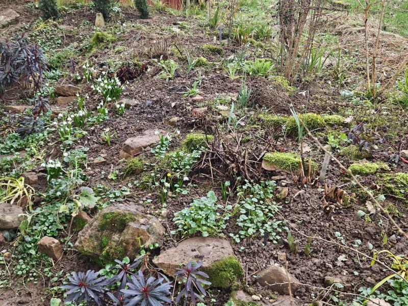 die ganze alte Matte abgeräumt. Märzenbecher versuchen einen Bestand zu bilden.