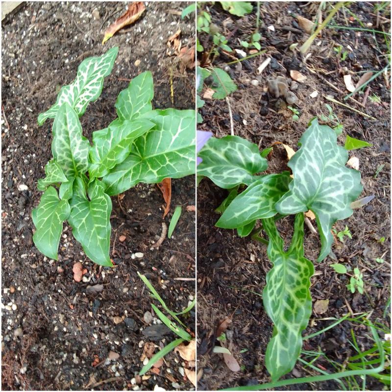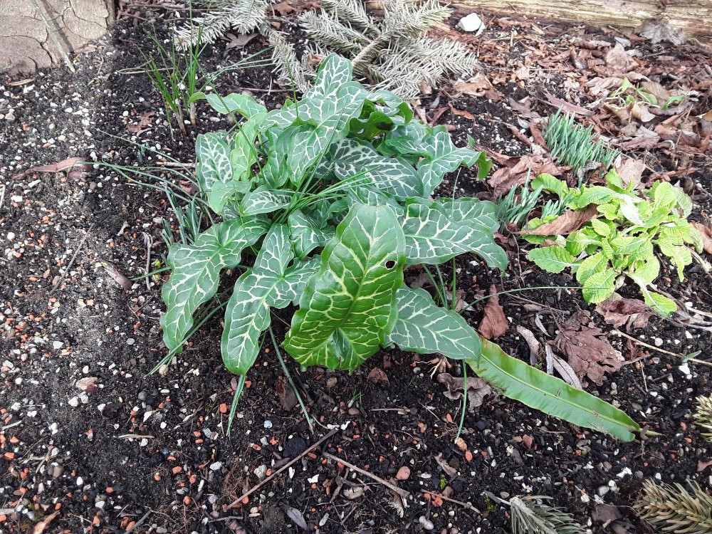 Nach Schnee und Dauerfrost hat Arum maculatum sich gut entwickelt.
