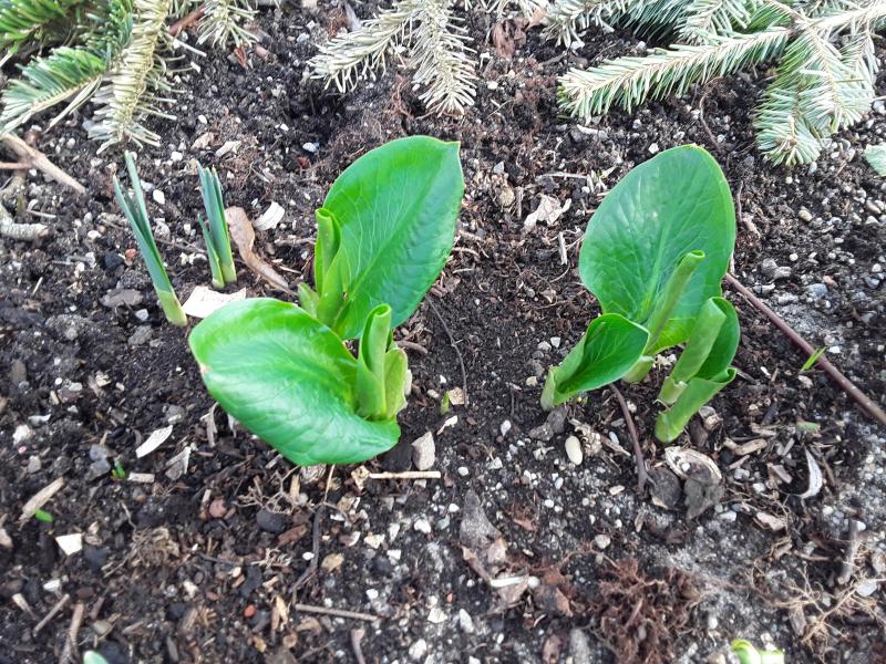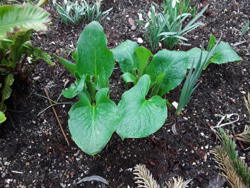 Bei mir ist bis jetzt vom Arum italicum noch gar nichts sehen, lediglich A. maculatum schiebt vorsichtig erste Spitzen nach oben. Um den A. italicum beginne ich mir Sorgen zu machen – ich meine, dass der im letzten Jahr bereits im Winter kam und im März dann schon stattlich war ???. Falls der A. maculatum aber in diesem Jahr nicht so "wuchernd" wiederkommt, da hätte ich nichts dagegen...