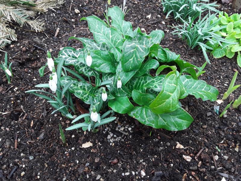 Wir hatten tagelang viel Schnee und viele Tage/Nächte Dauerfrost : für Arum italicum kein Problem ( Whz 6b )
