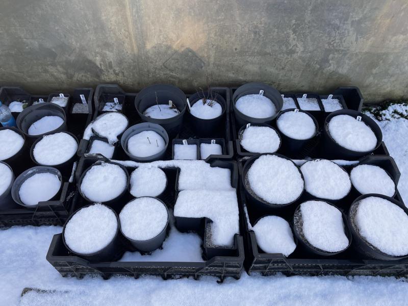 Von den schon im November/Dezember aufgelaufen dürfte letzte Woche bei einer Nacht mit -18 Grad das meißte wohl hinüber sein :-X (die Lilium apertum hatte es schon bei dem Schnee und Frost im Dezember erwischt >:()