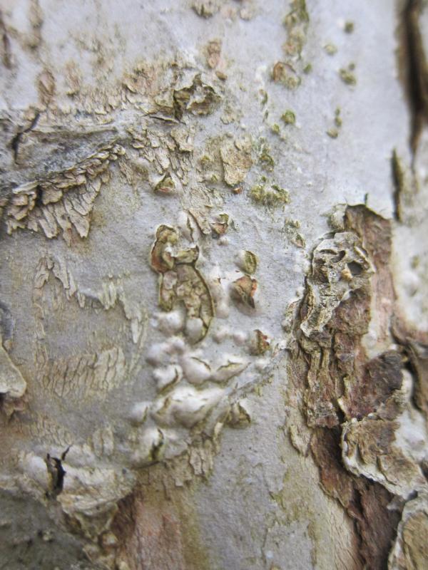 Die Bäume auf den Fotos kommen jetzt übrigens in ein Alter, wo sich eher mal die Borke abschält und die jugendliche Rinde einer eher erwachsenen Rinde weicht. Auch das spricht für normale Korkzellen und normale Vorgänge, eher nicht für Pilzbefall, welcher auch immer.