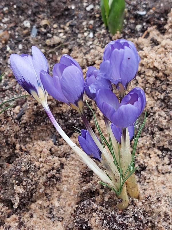 Hier ist es mal wieder zum Mäusemelken. Die De Jager' sind auch beim dritten Anlauf (diesmal bei Camphausen geordert) keine 'De Jager' und auch die neu gesteckte Gruppe Crocus corsicus ist nicht ganz das, was ich gekauft habe: links eventuell einer (oder ein 'De Jager' ?), dann kommen die üblichen 'Zwanenburg', mit denen offenbar solche Raritäten gestreckt werden sowie ein Crocus sieberi 'Firefly'...