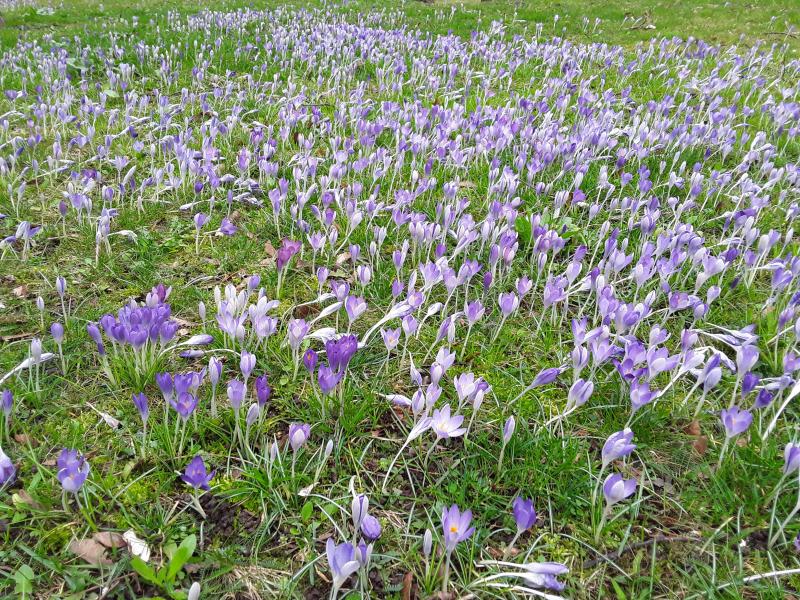Zum ersten Mal überhaupt im Garten haben sich unter meiner Zaubernuss die Elfenkrokusse versamt. Hier habe ich einige Mauselöcher entdeckt, da standen auch ein paar weiße Crocus chrysanthus, aber die sind leider die Leibspeise der Mäuse. :( Die Elfen werden die Lücken hoffentlich bald schließen, das Weiß steuern zum Glück auch die Schneeglöckchen bei, die sich ebenfalls gut vermehrt haben.
