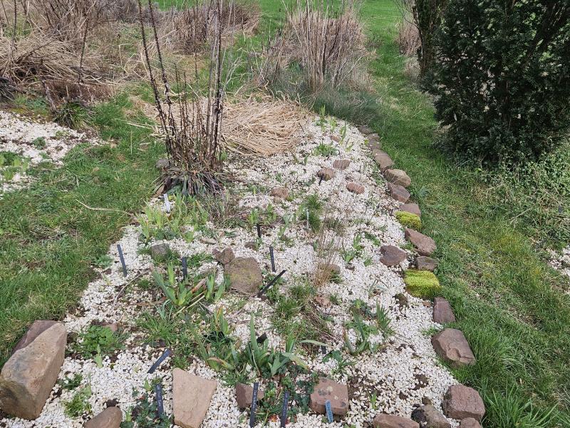 unbeeindruckt, Primula vulgaris. Hatte ich mal für die Karnevals-Primel, Primula vulgaris subsp. sibthorpii, angesehen weil sie sehr früh blüht. Jetzt heißt sie einfach Magenta und ich werde versuchen sie zu teilen um den Bestand größer zu machen.