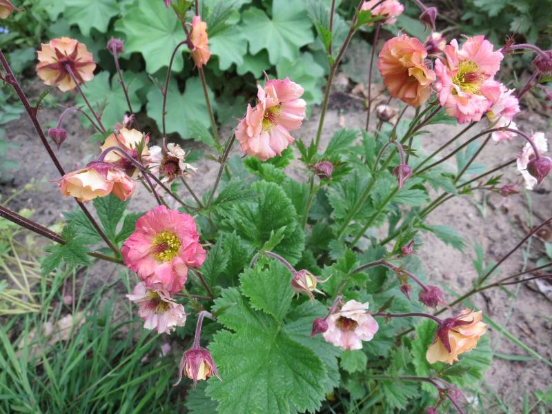 Geum 'Mai Thai', leider nur mit Alchemillablättern