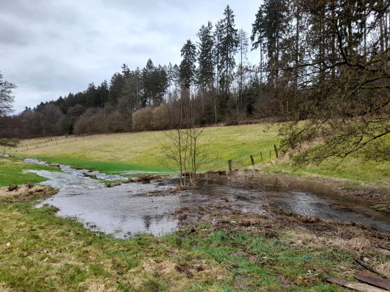Draußen in der Landschaftspflege: Woher kommt in den Büwiesen Plastikfolie im Bach. Oberhalb ist doch nüscht ???