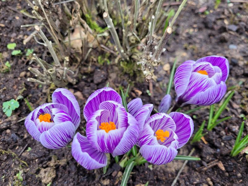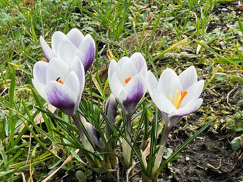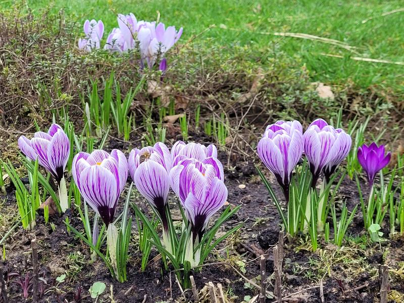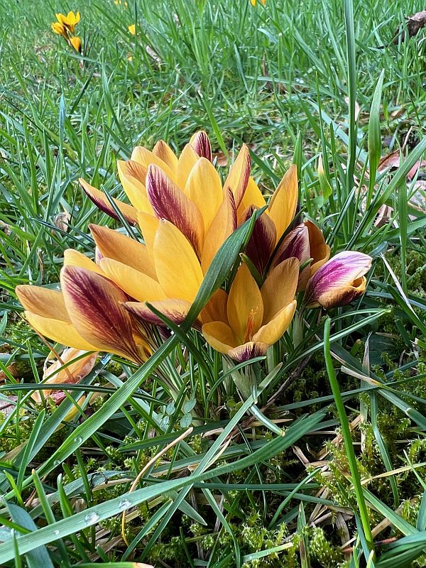 Bin erstaunt über die so unterschiedlichen Blühzeiten bei den Krokussen hier. Gut so, ein großer Teil der Frühaufsteher ist schon vom Regen vermatscht. Nicht so Tricolor... :D