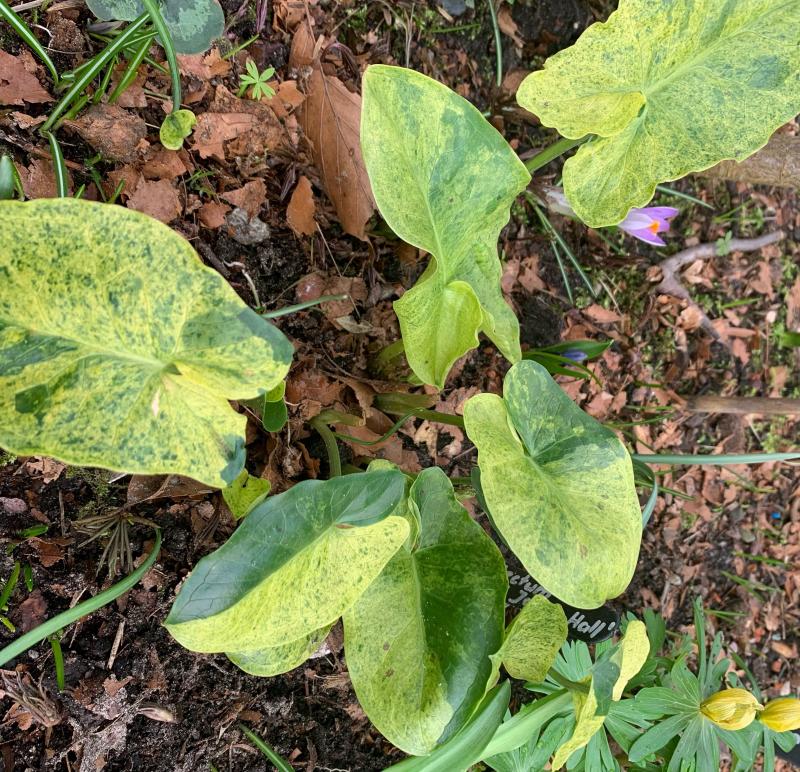 Arum italicum ‚Bella Italia‘ von Gert Geensen. Dieser Arum steht hier im zweiten Jahr.