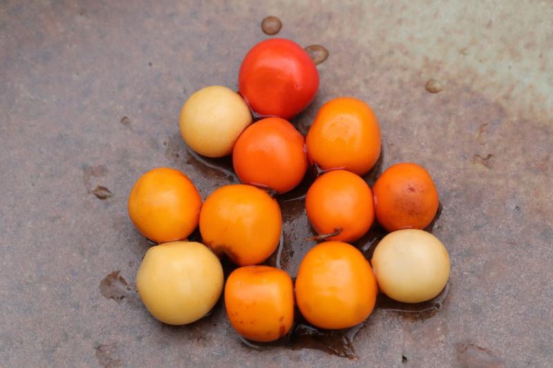 Hier tragen beide Pflanzen weiße Früchte. Die beiden stehen nicht weit voneinander entfernt, die nächsten normalen I. foetidissima stehen fast 150 m weiter weg, da dürfte sich die Aussaat wohl lohnen.