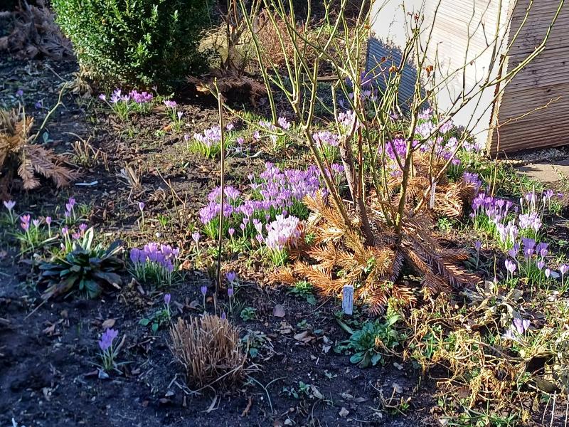 Diese Jahr waren vor allem die crocus tommasianus eine große Enttäuschung. Der viele Regen ließ Ihnen nur einen Tag zum Öffnen. Danach nur noch Matsch. Ruby Giant ploppen noch in großer Menge auf. Vielleicht schaffen sie es, zu blühen?