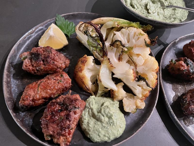 Das sah so gut aus, dass ich heute auch Steckrübe gekauft habe, aber erstmal gibt es heute Blumenkohl aus dem Ofen mit Petersilientahinsauce und Köfte.