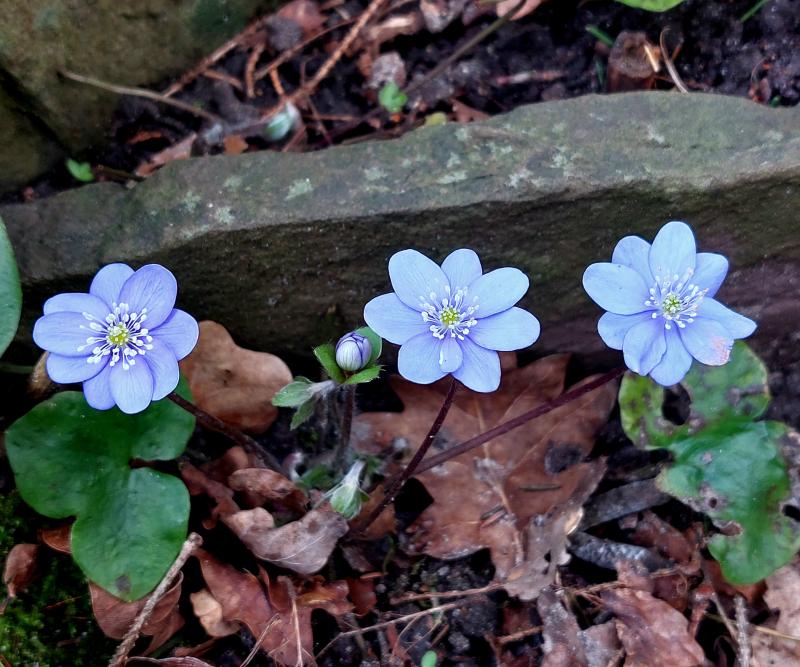 Hier ploppen auch die ersten beiden Leberblümchen, die ich je hatte auf. Die Blütchen sind aber nur ca. 1 Cent-Stück gross bisher.
