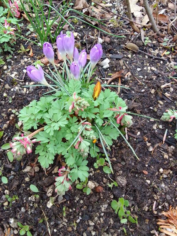 Moms alte Crocus vernus-Mischung versamt sich seit Jahren unter der Magnolie.