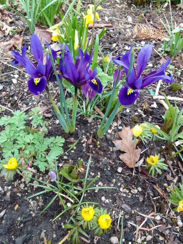 Bei meinen in den vergangenen zwei Jahren neu gepflanzten Iris reticulata irritiert mich eines sehr: Die Blüten tauchen so absolut ungleichzeitig auf... in manchen (natürlich gleichzeitig gesetzten) Gruppen erstreckt sich die Blütezeit über Wochen. Ein zwei Blüten öffnen sich, stehen ein paar Tage prächtig da, verblühen allmählich und dann blühen andere Pflänzchen der Gruppe auf. Jedenfalls erscheint das Ganze optisch absolut nicht als Gruppe. Das geht mir mit anderen Geophytentuffs doch deutlich anders. Auch da gibt es eine gewisse Varianz des Blühtermins, aber doch nicht so ein kleckerweises Erscheinen.