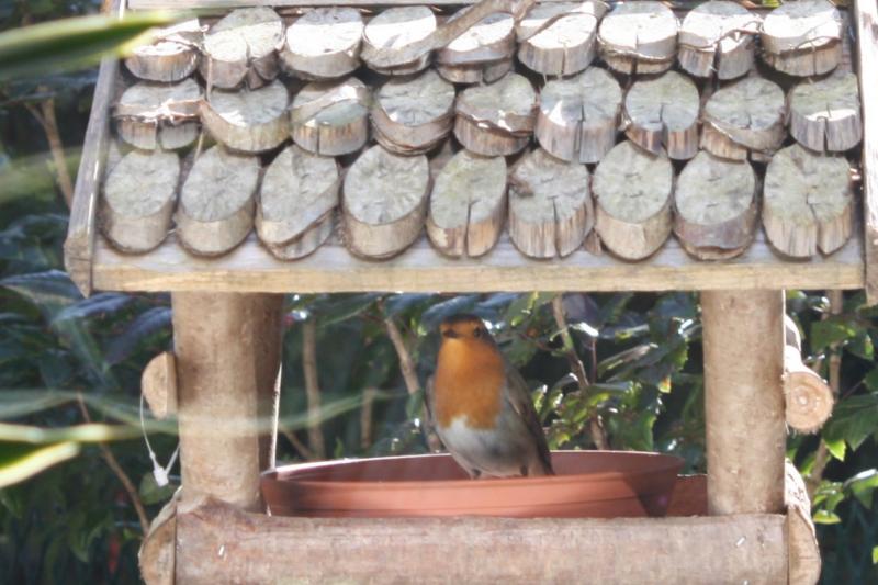 Heute Morgen, als ich zum Vögelfüttern raus bin, hat mich das Rotkehlchen begrüßt.