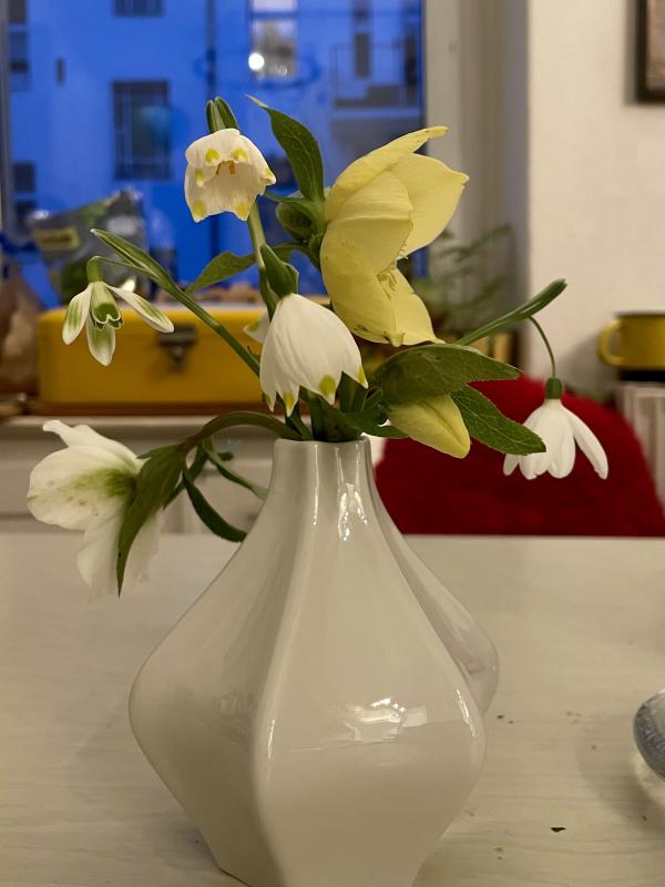 Deine Veilchen, pearl, sind wunderschön! In MV ist gerade das Wochenende der offenen Töpfereien. Bei Christoph Bader in Losen, der als einer der wenigen Töpfer noch im Holzofen brennt, habe ich diese Vase und noch 2 Porridge-Schälchen erstanden. Es ist Porzellan Steinzeug mit Tobi-Kanna-Dekor.