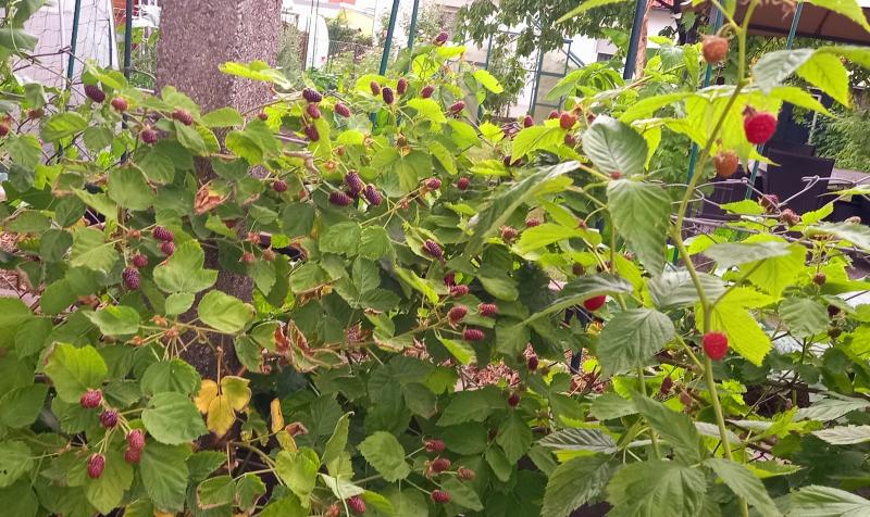 Wie bereits erwähnt, wächst sie stärker als Navaho, macht 3-4m lange Ruten. Da sie aber sehr biegsam, stachellos und dünn sind, kann man sie gut leiten. Sie wächst nicht aufrecht wie Navaho, muss daher zwingend angebunden werden. Ich binde die neuen Triebe, die jetzt bereits rauskommen, zuerst nach links, sobald die alten abgeerntet und abgeschnitten sind - nach rechts. Ich lasse ca 8-10 Ruten stehen. Sie ist auch sehr ertragreich - 6 bis 8 kg von einer erwachsenen Pflanze sind normal. Mir Schädlingen hatte ich bis jetzt keine Probleme, meistens zerstören sie die Himbeeren. Letztes Jahr war irgendeine Wanze am Werk - Totalausfall bei den Sommerhimbeeren.