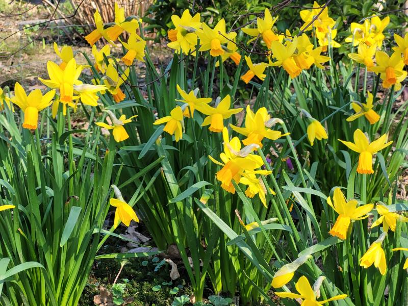 Schöne, leuchtende Narzissenbeete bei Dir, Buddelkönigin - hier blühen bislang nur die kleineren Formen, im Bild Tete - a - Tete ( glaub' ich )