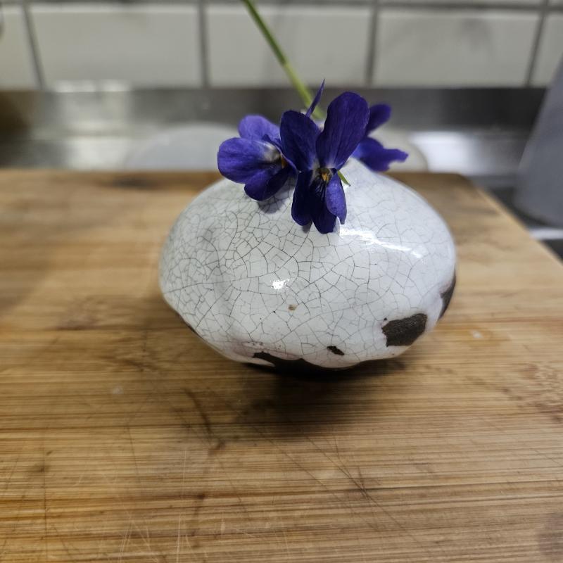 Deine Veilchen, pearl, sind wunderschön! In MV ist gerade das Wochenende der offenen Töpfereien. Bei Christoph Bader in Losen, der als einer der wenigen Töpfer noch im Holzofen brennt, habe ich diese Vase und noch 2 Porridge-Schälchen erstanden. Es ist Porzellan Steinzeug mit Tobi-Kanna-Dekor.