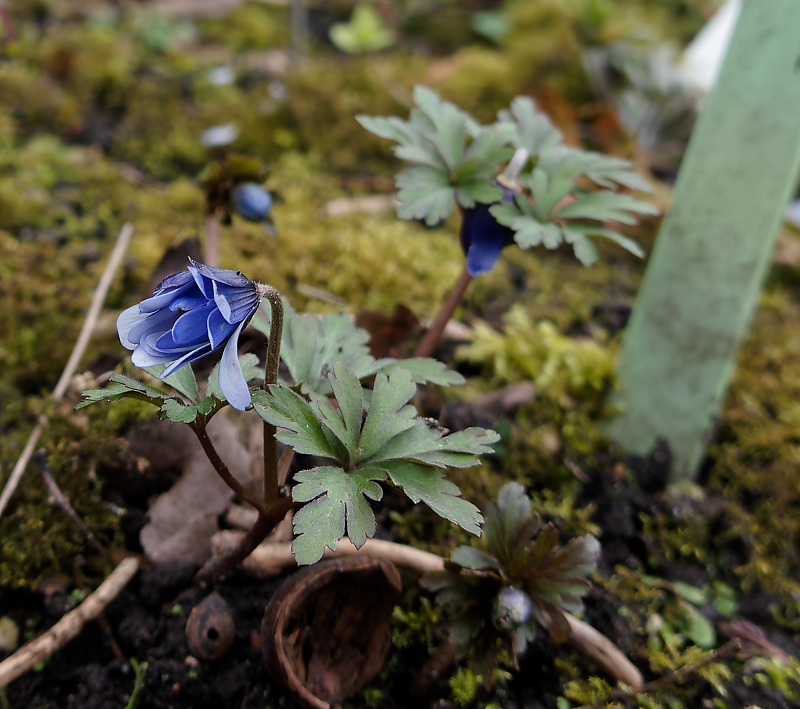 Hier blüht Anemone blanda in diesem Jahr sehr unterschiedlich. Die ersten verblühen bereits, während andere kaum aus dem Boden sind. Diese eher dunkle ist jedenfalls ganz hübsch.