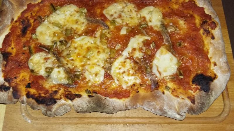 Und hier die erste selbstgemachtes Pizza seit Ewigkeiten, schlicht und einfach: Tomate, Sardellen, Frühlingszwiebeln und Mozzarella :D :D :D