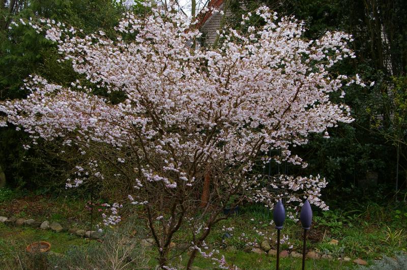 Die ist ja sehr schön aufgeastet, wirklich malerisch! Meine kleine im Topf blüht auch gerade auf, ich müsste nochmal dran schnuppern, aber eigentlich duften Zierkirschen nicht, oder allenfalls ganz leicht.