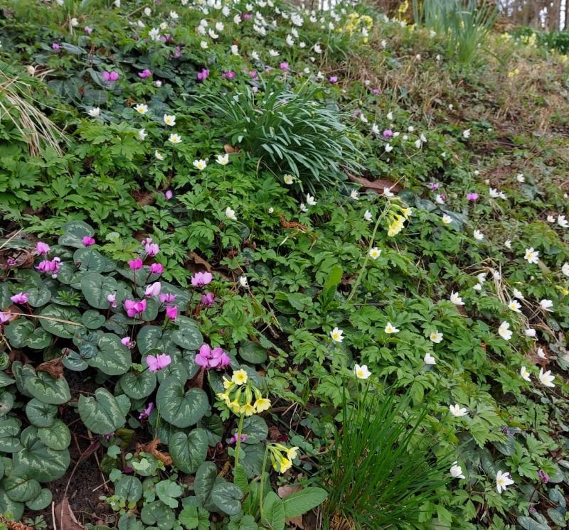 Schnell was Schöneres. Am Hang übernehmen jetzt die Buschwindröschen.