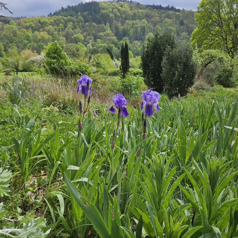jetzt ist alles zurückgeschnitten und gemäht. Das Gras an den Rändern um die Iris ist geschnitten, ein bisschen gejätet ohne Knospen abzubrechen. Zwischen den Iris lasse ich alles stehen bis nach der Blüte. Das klappt.
