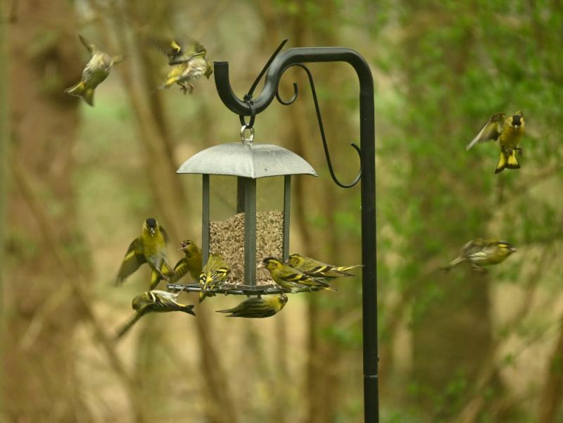 Ich schätze, es sind seit einer Woche über 100 Erlenzeisige. Ziehen die auch mal weiter oder bleiben die hier?
