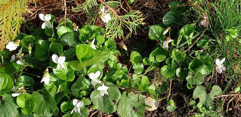 Dieses weiße Veilchen habe ich vor Ewigkeiten mal in Weimar auf einem Markt als Goethe-Veilchen gekauft. Es hat sich wunderbar vermehrt. :)