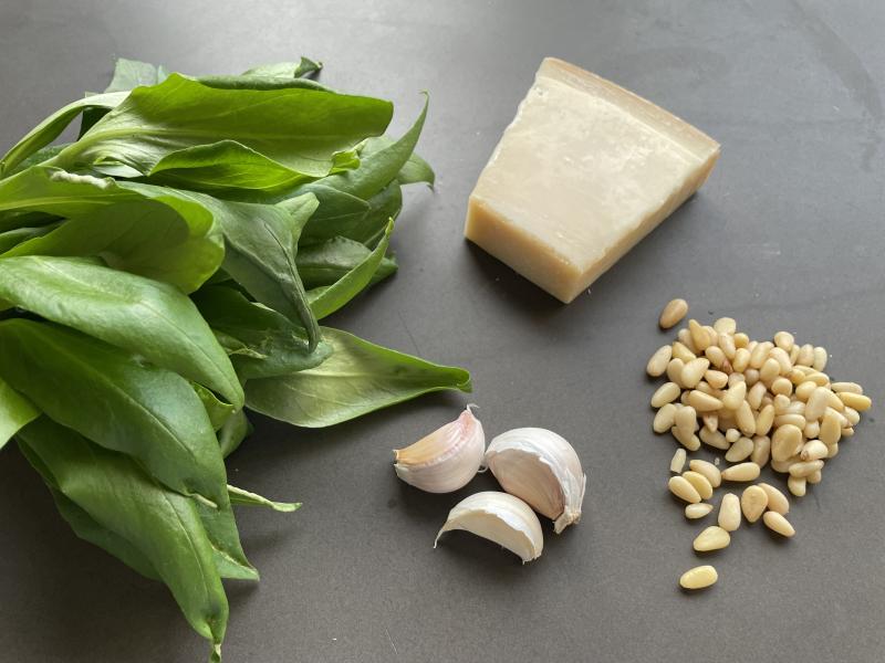 Heute habe ich Pesto aus den frischen Blättern von der roten Spornblume gemacht. :)
