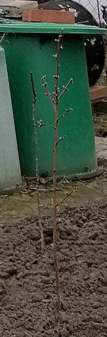 Das Bäumchen hatte mehrere Seitenäste die ich auf 2 Augen gekürzt habe und oben 1/3 vom Haupttrieb gekappt.