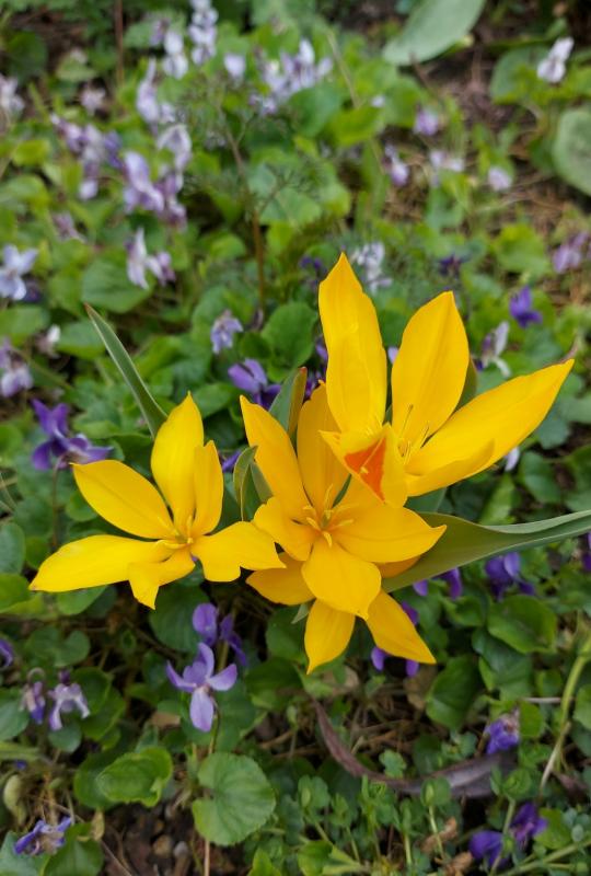 Normalerweise vermehrt sich 'Purissima' hier auch sehr gut, letztes Jahr hatte ich sicher an die 50 Blüten. Dieses Jahr sind's vielleicht 5, dazu viel Laub. Mit den Darwin-Tulpen sieht's ähnlich aus, viel Laub, aber nur hier und da mal ein Blütenstängel, und auch sonst sieht es eher mager aus. Vielleicht nächstes Jahr wieder, sofern die Mäuse genug übrig lassen...