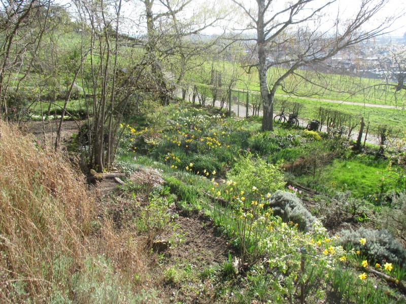 Gerade heute früh dachte ich daran, die herumvagabundieren Narzissen zu versetzen und in einem Beet (oder zweien) so ein Band wachsen zu lassen (welches sich schon andeutet, aber noch nicht fertig ist). Die Ansicht deiner Beete bestärkt mich in dem Gedanken.